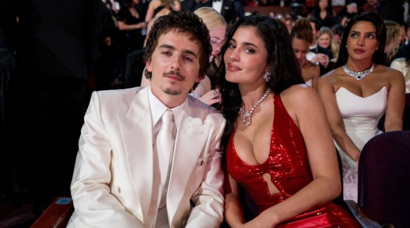 Timothée Chalamet and his girlfriend, Kylie Jenner, attended the Oscars on Sunday evening together, with the couple having front row