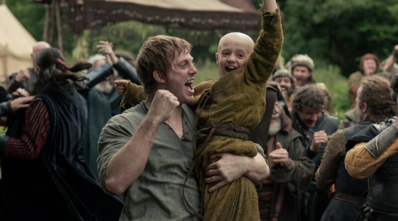 Based on Martin’s Tales of Dunk and Egg novellas set about a century before the events of Game of Thrones, A Knight of the Seven Kingdoms tells the story of Ser Duncan “Dunk” the Tall (Peter Claffey) and his young traveling companion, Egg (Dexter Sol Ansell). Because Dunk is a hulking mountain of a man armed with a longsword, people are loath to pick fights with him as he journeys through Westeros’ countryside. But the man’s clumsiness and soft-spoken nature make it easy for others to dismiss him as a simpleton when he tells them that he’s a knight of the realm.