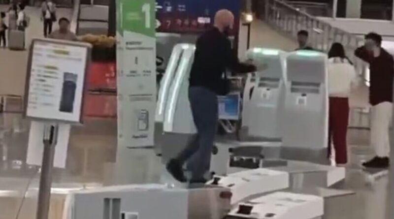This is the shocking moment a British tourist used a metal post to smash up check-in kiosks, nearby counters and railings during an early morning rampage in Hong Kong Airport. During his rampage, the man, 35, damaged 10 check-in desks at the airport’s Terminal 1 at around 6am local time on Monday (February 16), before being arrested for possessing Viagra.