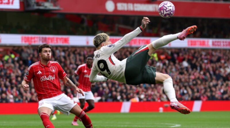 Alejandro Garnacho attempting a bicycle kick. (Image: Getty.)