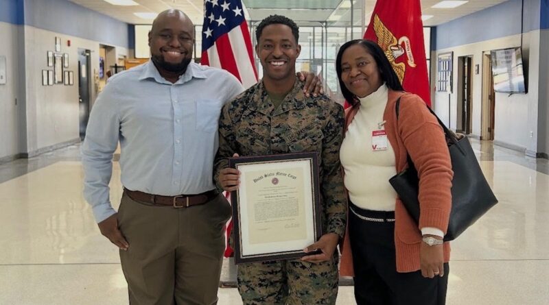 Ian Ferguson (center) is pictured with his brother, Eric Ferguson, and his mother, Cheryl Campbell-Dixon, at his promotion to staff sergeant. (Ian Ferguson)