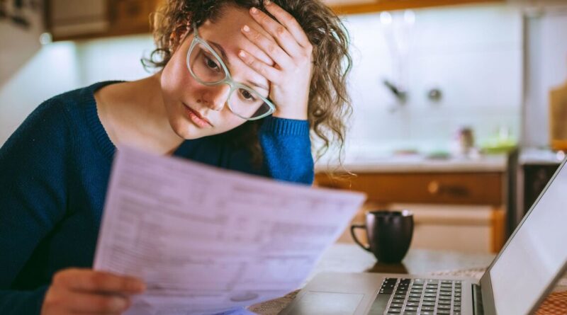Woman going through bills, looking worried