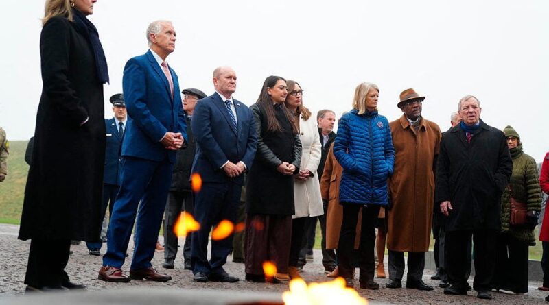Members of the U.S. Congressional delegation attend a wreath-laying ceremony at the Memorial for Denmark’s international efforts after 1948 at Kastellet in Copenhagen on January 17, 2026.