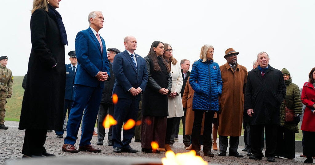 Members of the U.S. Congressional delegation attend a wreath-laying ceremony at the Memorial for Denmark’s international efforts after 1948 at Kastellet in Copenhagen on January 17, 2026.
