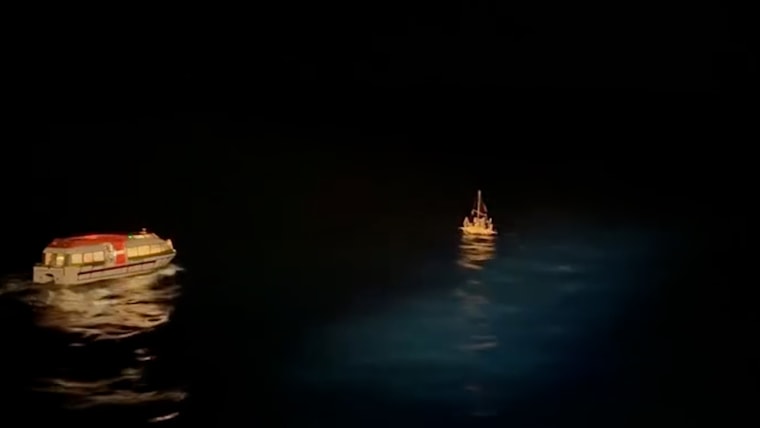 Cruise ship deploys lifeboat to rescue people on sinking raft