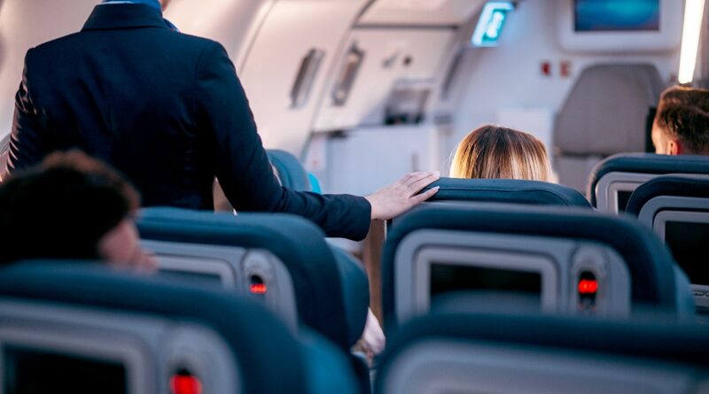 Flight attendant checking that everything is ready for take-off