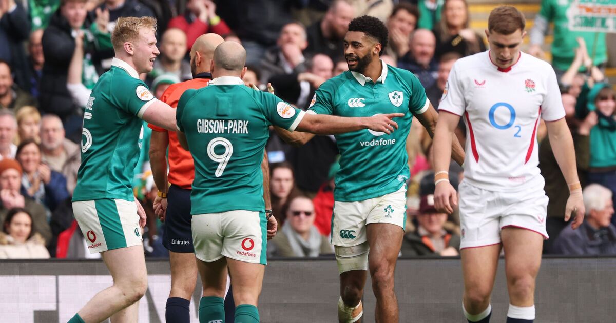 Ireland have never scored more points on English soil, with Jamison Gibson-Park, Robert Baloucoune, Tommy O’Brien, Dan Sheehan and Jamie Osborne running in the tries in a commanding victory that will live long in the Irish memory. Here, Express Sport rates both teams as Andy Farrell’s outfit stamped their authority as the leading challengers to France today…