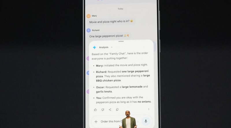 Onstage, Sameer Samat, Google’s president of Android, showed off a demo of how Gemini’s new agentic features would work to help wrangle a pizza dinner order from his busy family group chat. Samat asks Gemini to look at the chat thread and figure out what to order, and then make the order with a delivery app. Onscreen — in a prerecorded video, it wasn’t live — you can see Gemini figuring out what everyone wants from the group chat and showing that in a window. Then the user, via voice request, tells Gemini to complete that order, naming a specific pizzeria. Gemini then clicks through GrubHub to prep the order, all still onscreen. When the order is ready, Gemini sends an alert so the user can review it and actually press the submit button.