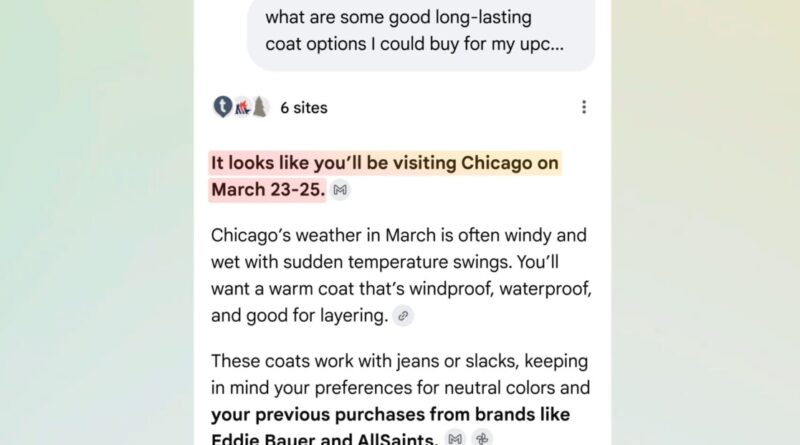 For example, Google says Personal Intelligence allows AI Mode to suggest travel itineraries by referencing hotel bookings in your Gmail and holiday snaps in Photos. If you take a lot of selfies with ice cream, then it could curate recommendations for ice cream parlors. When using AI Mode to shop online, it can prioritize products from brands you wear or have purchased before.