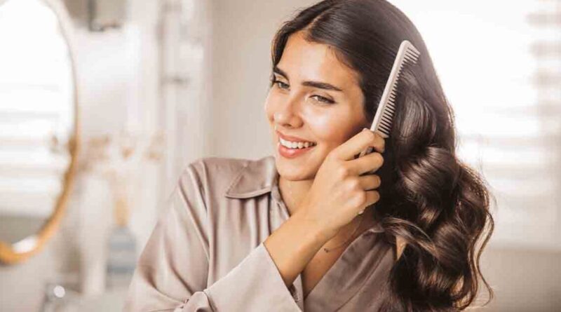 A woman combing hair