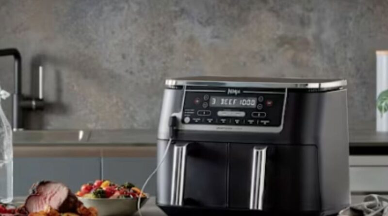 This takes the cost down further to £199.99. The large 9.5-litre capacity Ninja air fryer has six cooking functions, including Air Fry, Max Crisp, Roast, Bake, Dehydrate, and Reheat. Owners can cook two different types of food in the two separate trays, and they will both be ready at the same time.