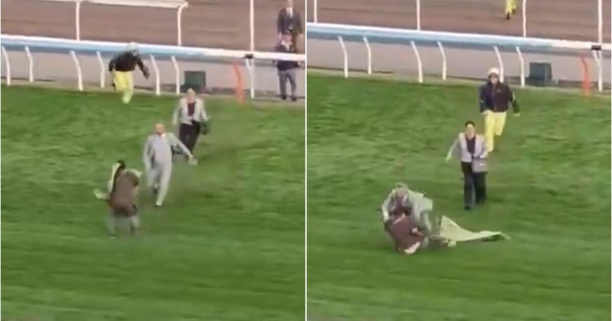 Horse racing protestor runs onto track in £4.1m race in terrifying scenes | Racing | Sport