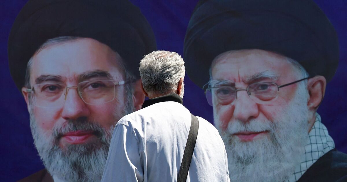 Man walks past banner of Iran’s new and former supreme leaders (file image) (Image: Getty)