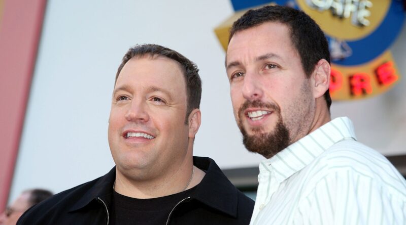 James, shown with Adam Sandler, recently shared a surprising anecdote about a motel room experience during an early-career comedy trip. (Kevin Winter/Getty Images)