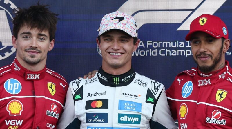 Lando Norris fires dig at Ferrari while sat between Lewis Hamilton and Charles Leclerc | F1 | Sport