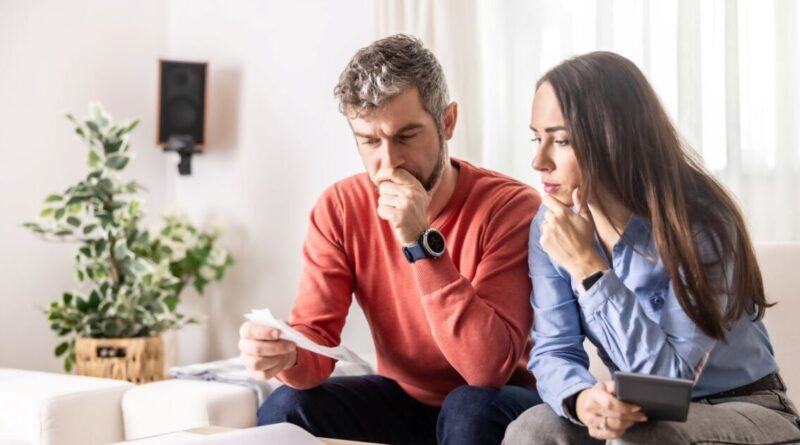 Two people looking at bank accounts