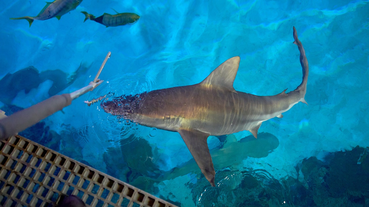 The casino’s lead aquarist, Becky O’Brien, told the AP she feeds 15 species of sharks three times a week.