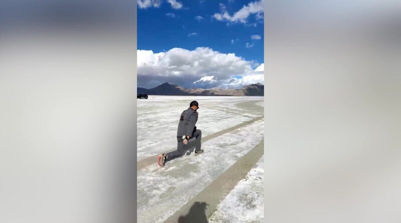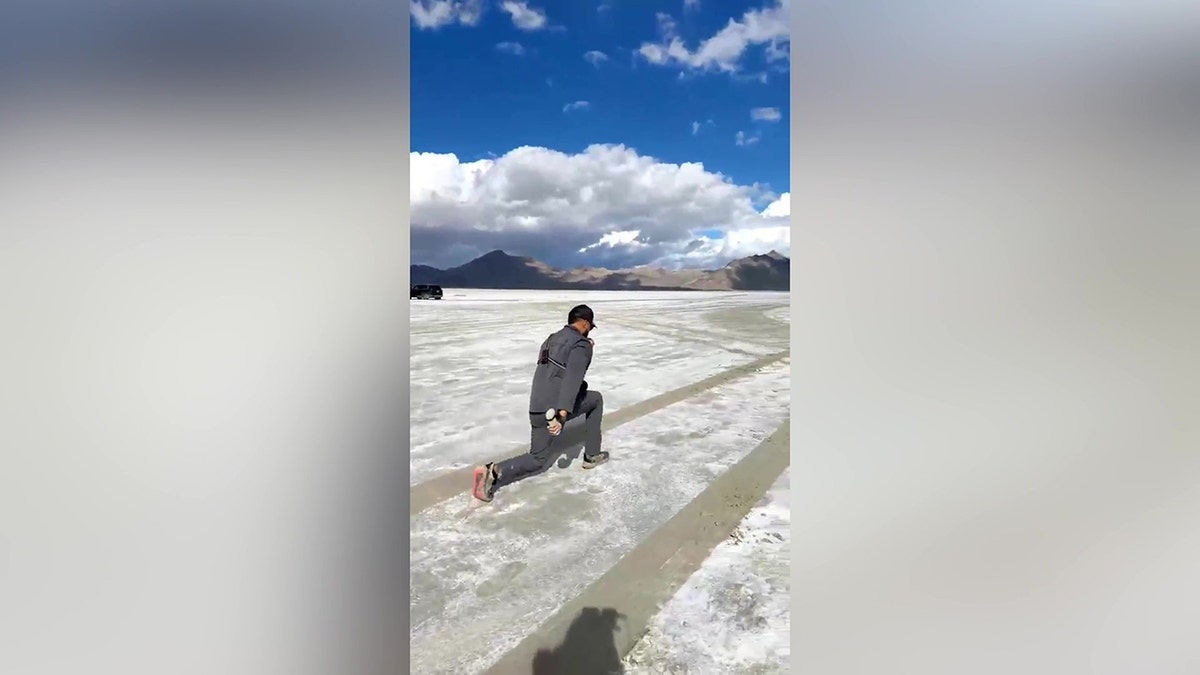 McCastle is pictured lunging across Utah’s Bonneville Salt Flats, which led to him setting two world records. (SWNS)
