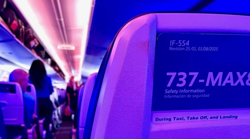 San Francisco, California, USA - June 6, 2025: Passengers on a Southwest Airlines Boeing 737-MAX8 aircraft settle in for a fligh