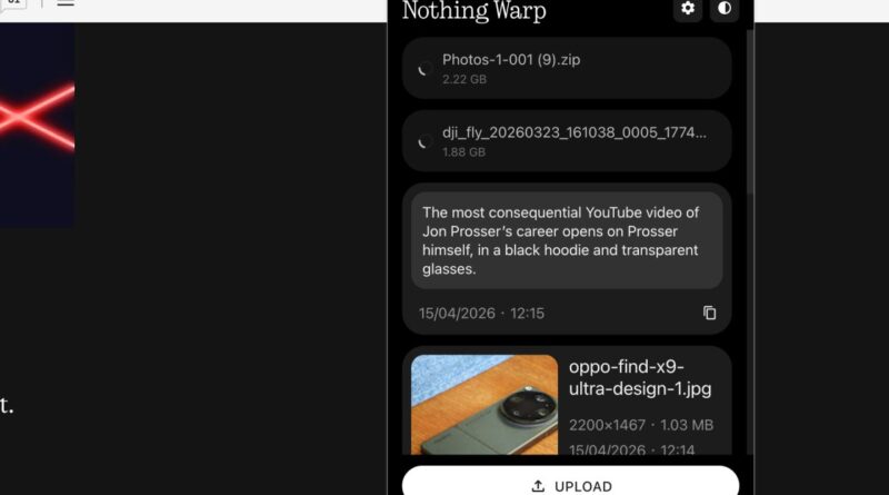 I test Android phones for a living, but I write about them using a company-supplied MacBook Air. Both platforms are great in their own right, but they’re not so great at talking to one another. On a handful of Google Pixel and Samsung Galaxy phones you can now AirDrop files directly to Apple machines; Nothing’s new Warp app hopes to solve the problem for the rest of us, offering a seamless(ish) way to send files and text between one machine and the other.