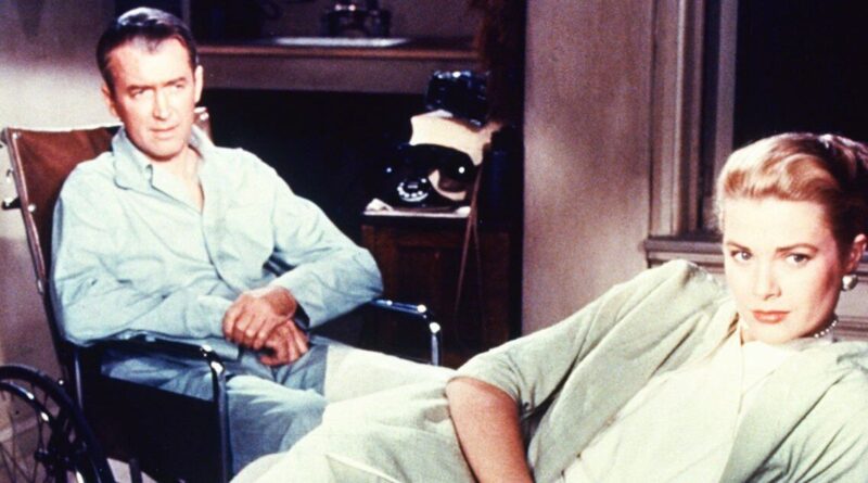 Stewart stars as a newspaper photographer with a fractured leg who spends his recovery watching his neighbours out the window.