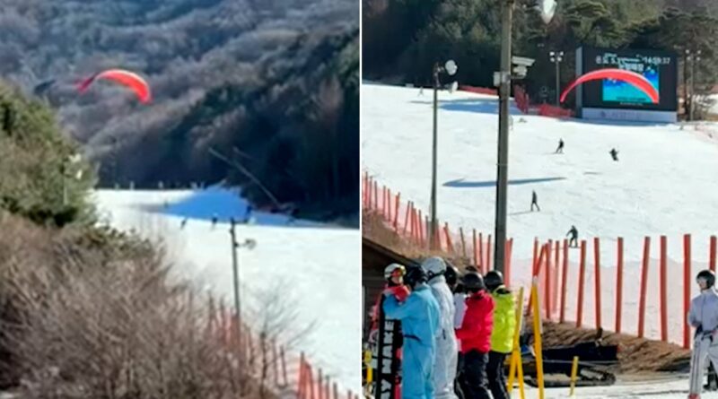 Paraglider makes emergency landing at South Korea ski resort after 2 hours