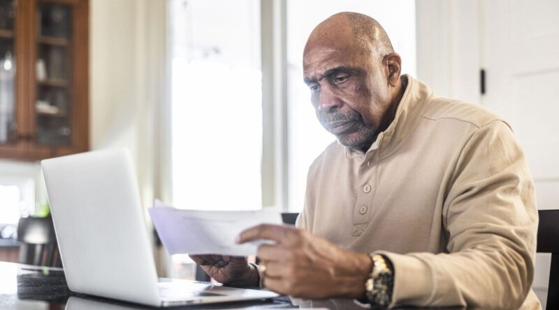 Senior man stresses over bills, financial problems