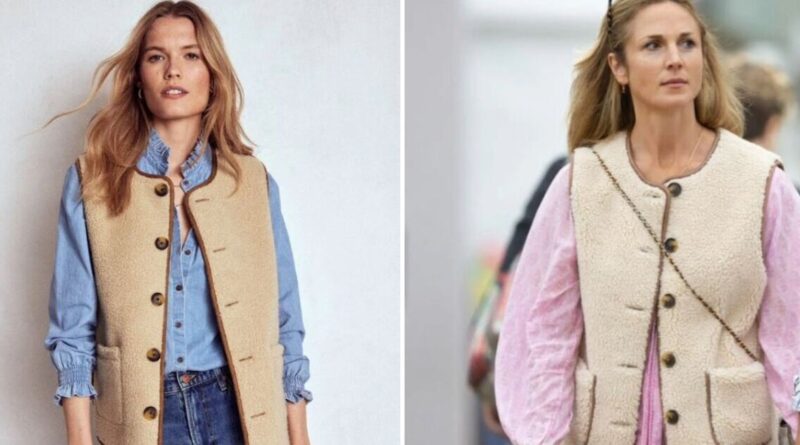 For a similar style, White Stuff’s loose-fitted Borg Gilet is currently on sale and reduced to £40 from £69. The oversized silhouette gives room for the wearer to style it with a chunky sweater. M&S’ Borg Button Through Gilet, £46, is designed in a regular fit, with a collarless neckline to create a pared-back, understated look.