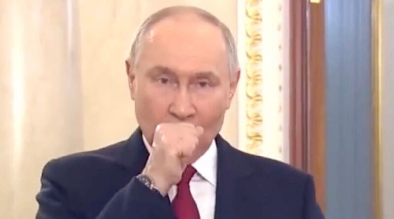 Vladimir Putin had to halt the recording of his TV broadcast marking International Women’s Day when he coughed and spluttered uncontrollably. The Russian autocrat, 73, was forced to redo the recording.