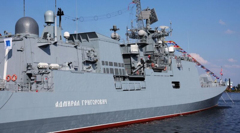 It has been reported that the Admiral Grigorovich, a Black Sea fleet frigate, accompanied a two shadow fleet ships on Wednesday, April 8. A British naval vessel followed behind.