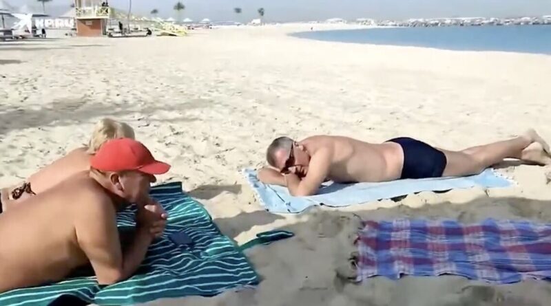 Reckless Russian tourists in Dubai claim they know all about war – so there’s no need to stop swimming and sunbathing. An unflustered family from Siberia is seen on a totally deserted beach as Iran attacks.