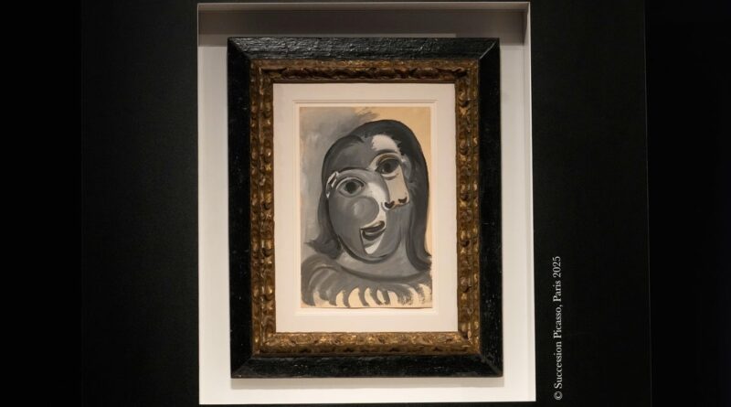 The painting “Head of a Woman” by Pablo Picasso, painted in 1941, is presented prior to the raffle draw at the auction house Christie’s in Paris, Tuesday, April 14, 2026.