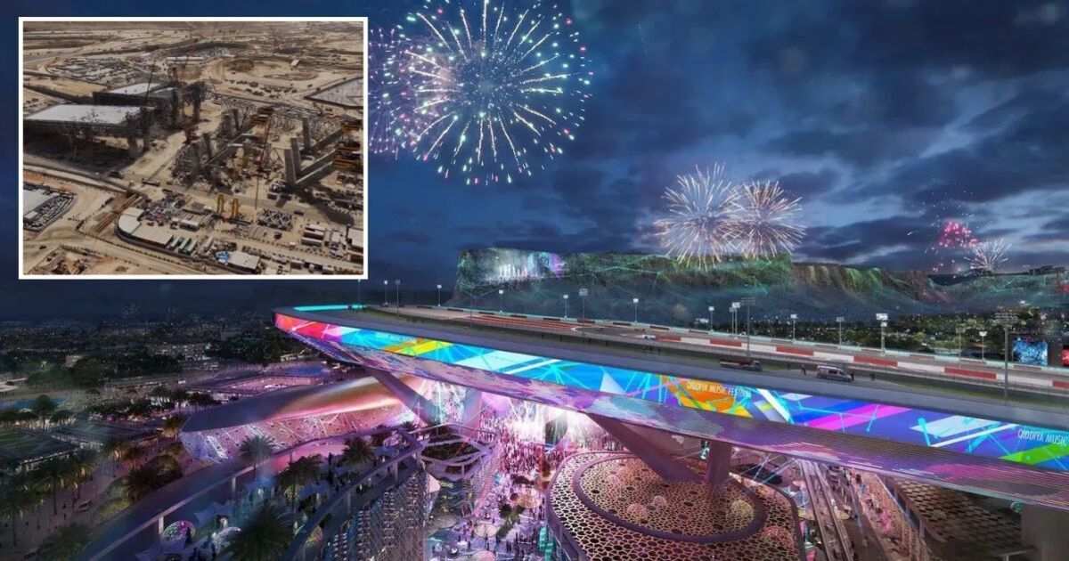 Qiddiya is an ‘Entertainment City’ which has yet to be built, to the west of the capital, but which Saudi Arabia hopes to turn into a major tourist hub. The city itself has not yet been constructed but satellite images show some major landmarks taking shape, such as a major new football stadium which is due to host matches at the 2034 World Cup, a huge Six Flags theme park and a new Mercedes ‘World of Performance’.