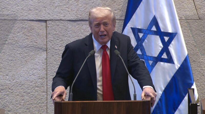 President Trump was greeted in Tel Aviv with cheers and a military ceremony as he met families of hostages held in Gaza and addressed Israel’s parliament. He now travels to Sharm El Sheikh, Egypt, to join world leaders in discussions on Gaza’s future and the next phase of the peace plan.