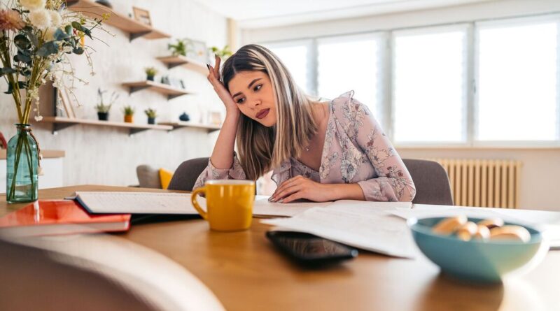 Worried Young Woman Checking Her Finances At Home