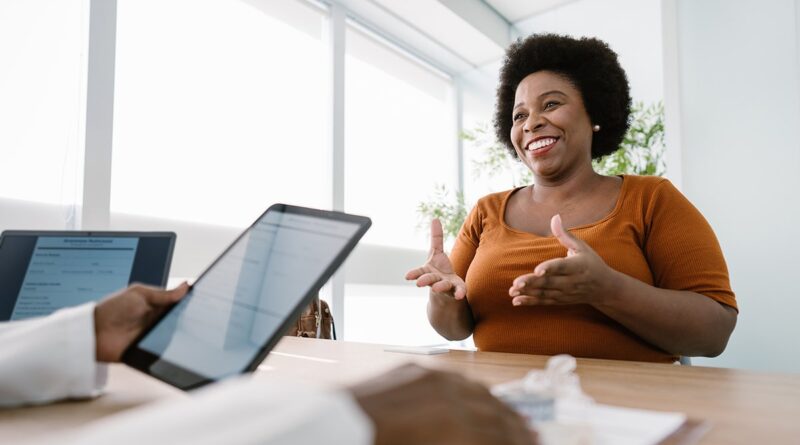 A nutritionist consulting with a client in an office setting