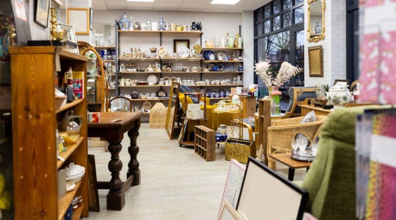 Bright And Tidy Charity Shop With Donated Goods On Display