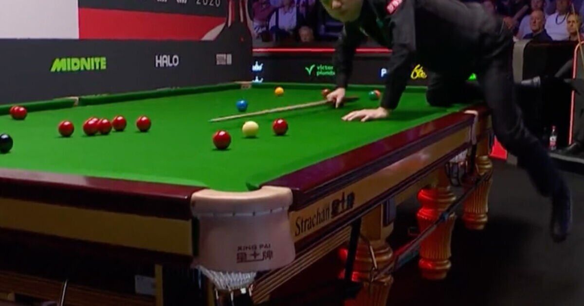 But during the 16th frame of the contest, fans inside the Crucible were sent into raptures as Ding had both legs off the ground and one knee on the table. The 39-year-old was only momentarily balanced off the ground and quickly returned to his feet.